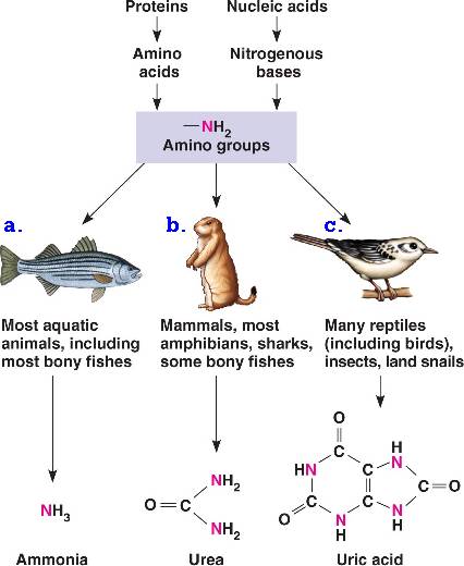 Mammals use energy to convert ammonia to the less toxic urea, which is excreted in urine.