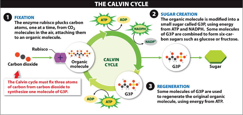 These "synthesis" reactions take place in the semifluid stroma of chloroplasts in a cycle of chemical reactions called the Calvin cycle.